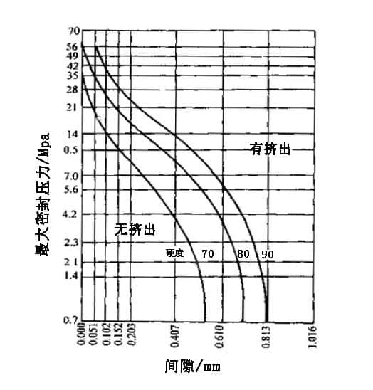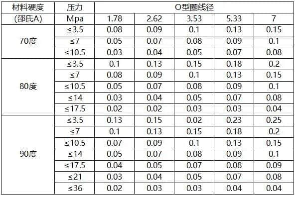 通常,工作壓力越高,Z大允許擠出間隙數值越小。如間隙數值超過允許范圍,O圈將被擠出甚至損壞。因此,當壓力超過5Mpa時,建議配合擋圈使用。